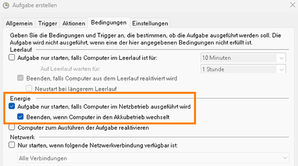 Danach wird der Task auch auf einem Notebook bei Akkubetrieb ganz normal ausgeführt!