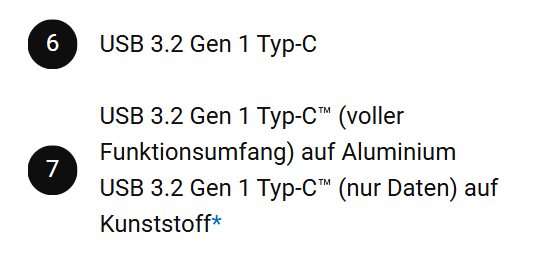 Erkennen kann man dies vor dem Kauf bei den Angaben zu den Anschlüssen. Dort wird auf dieses Detail bzw. USB-C mehr oder weniger wie folgt hingewiesen: